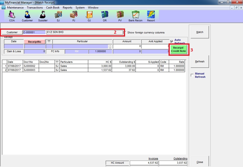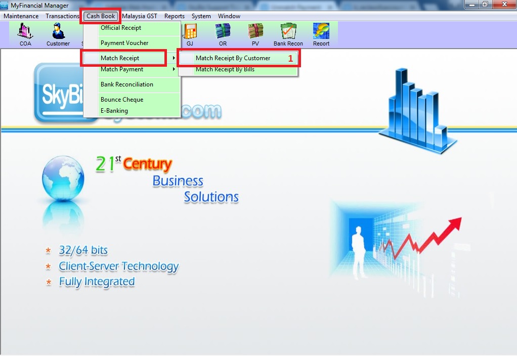 Step 1:Go to Cash Book - Match Receipt - Match Receipt By Customer