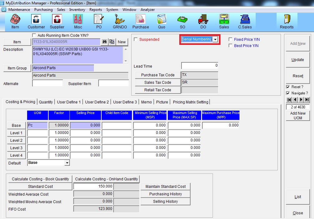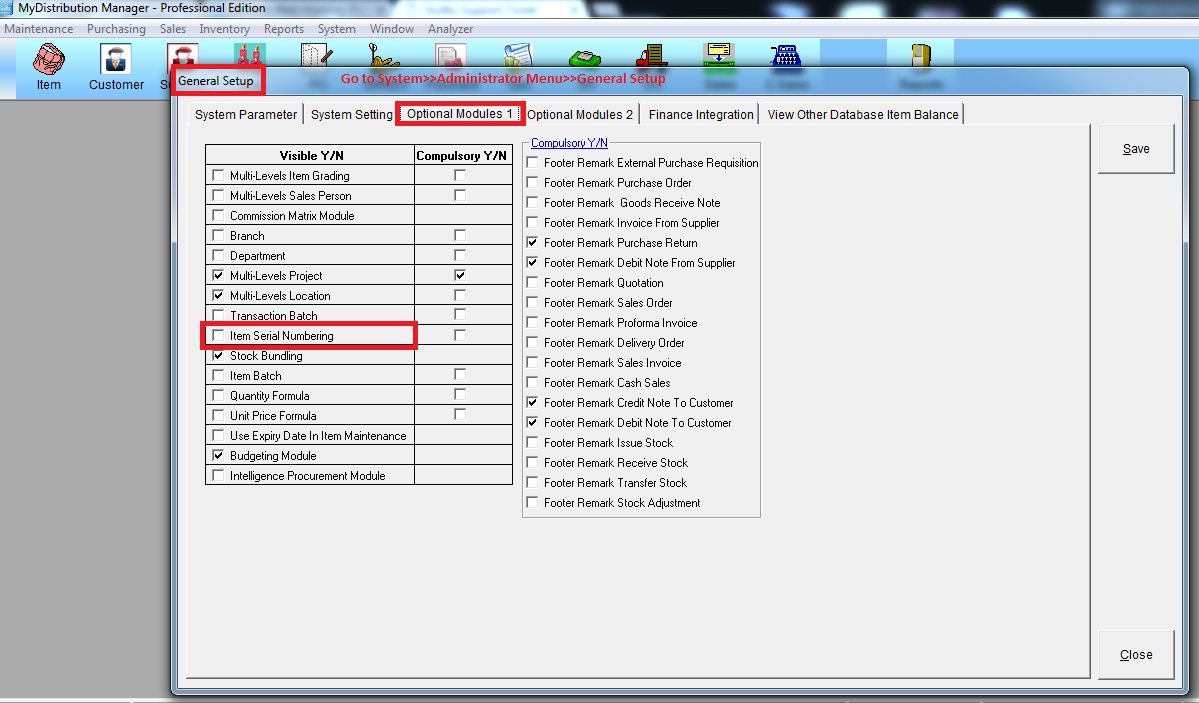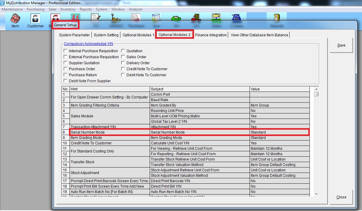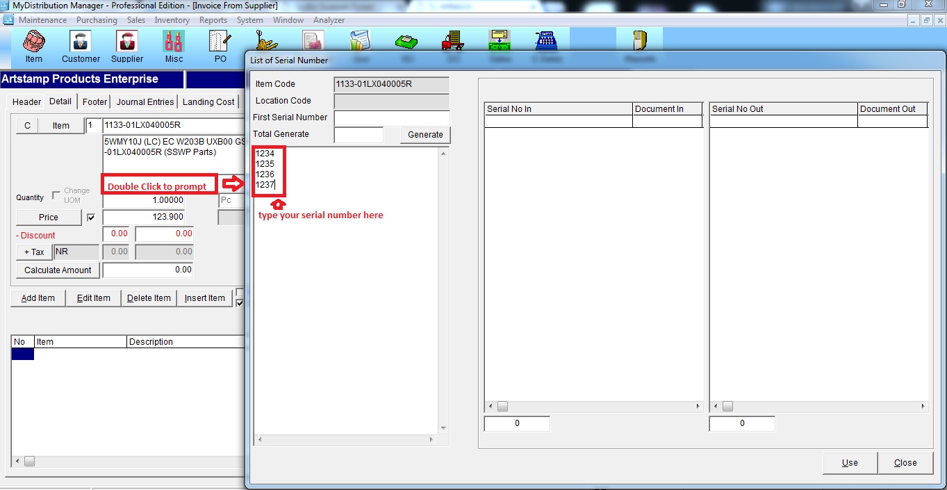 Below are guideline(s) to setting and entry serial number item :