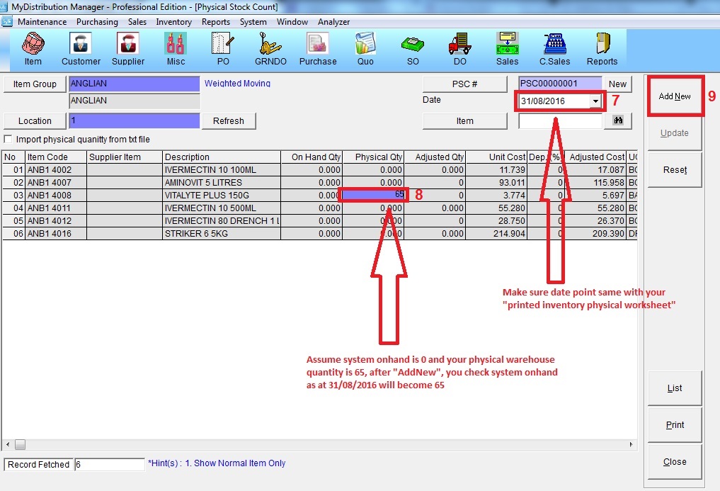 Step 3 : Adjust physical quantity at Inventory >> physical stock count