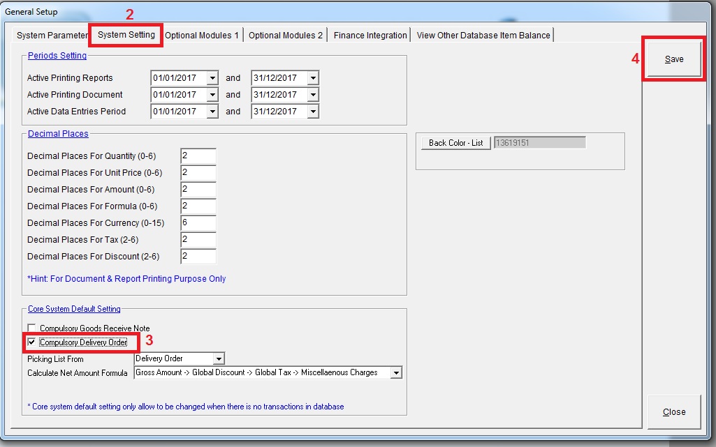 Step 2: Go to System Setting >> untick "Compulsory Delivery Order" >> click "Save"