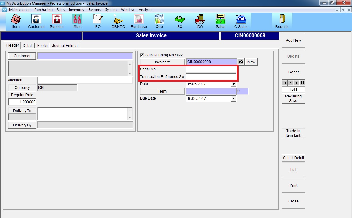 Below are guideline(s) to activate Additional Reference on Sales Invoice screen :