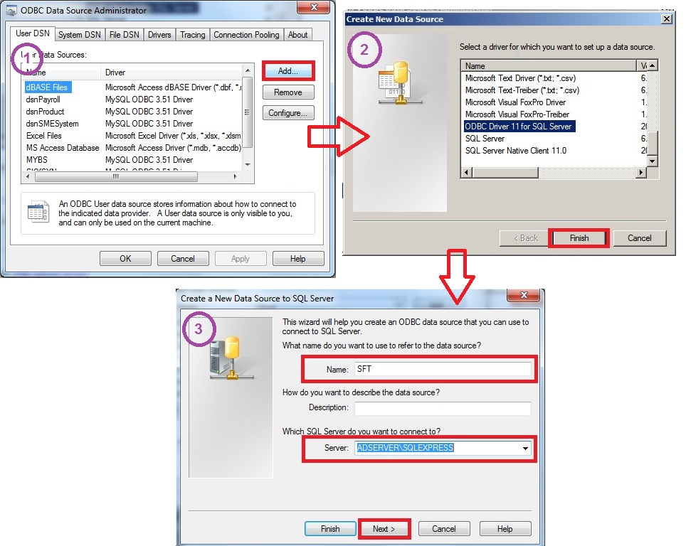 Below are guideline(s) to Open ODBC Data Source Administrator and Create SFT DSN