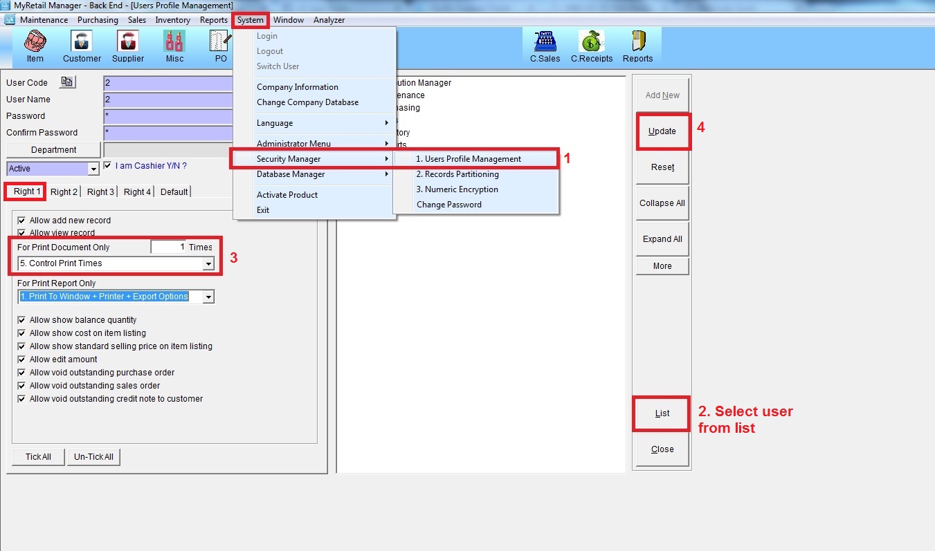 Step 1: Go to System >> Security Manager >> User Profile Management