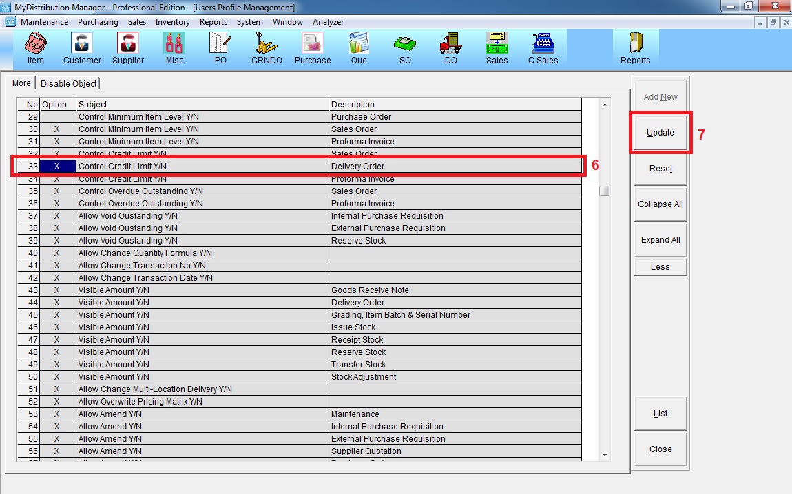 Step 2 : Mark "X" to activate blocking control limit on Delivery Order >> click "Update"
