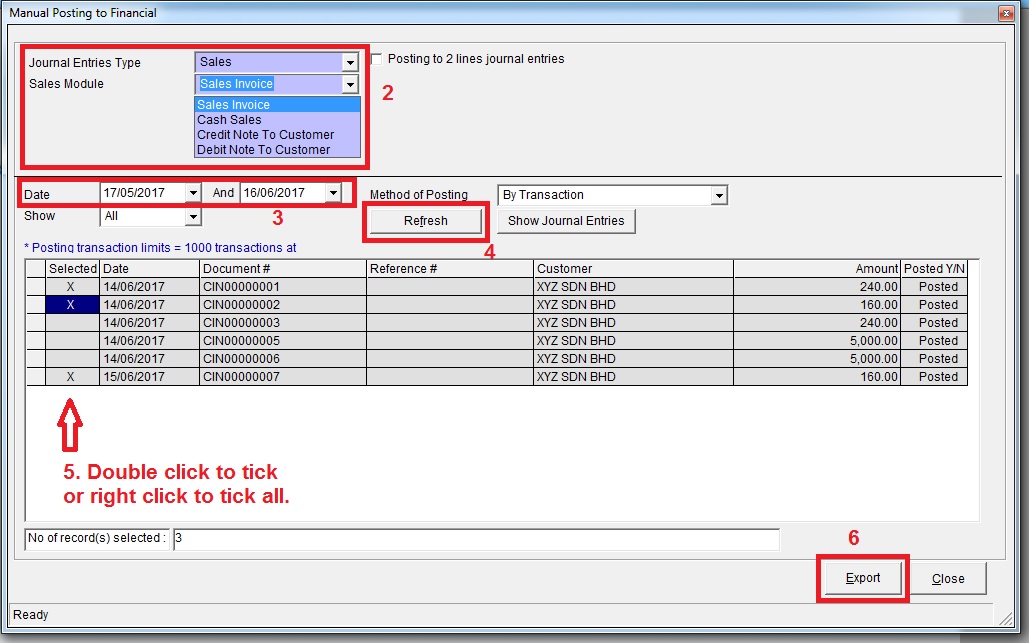 b. Select date, method of posting "by transaction" then click "Refresh"