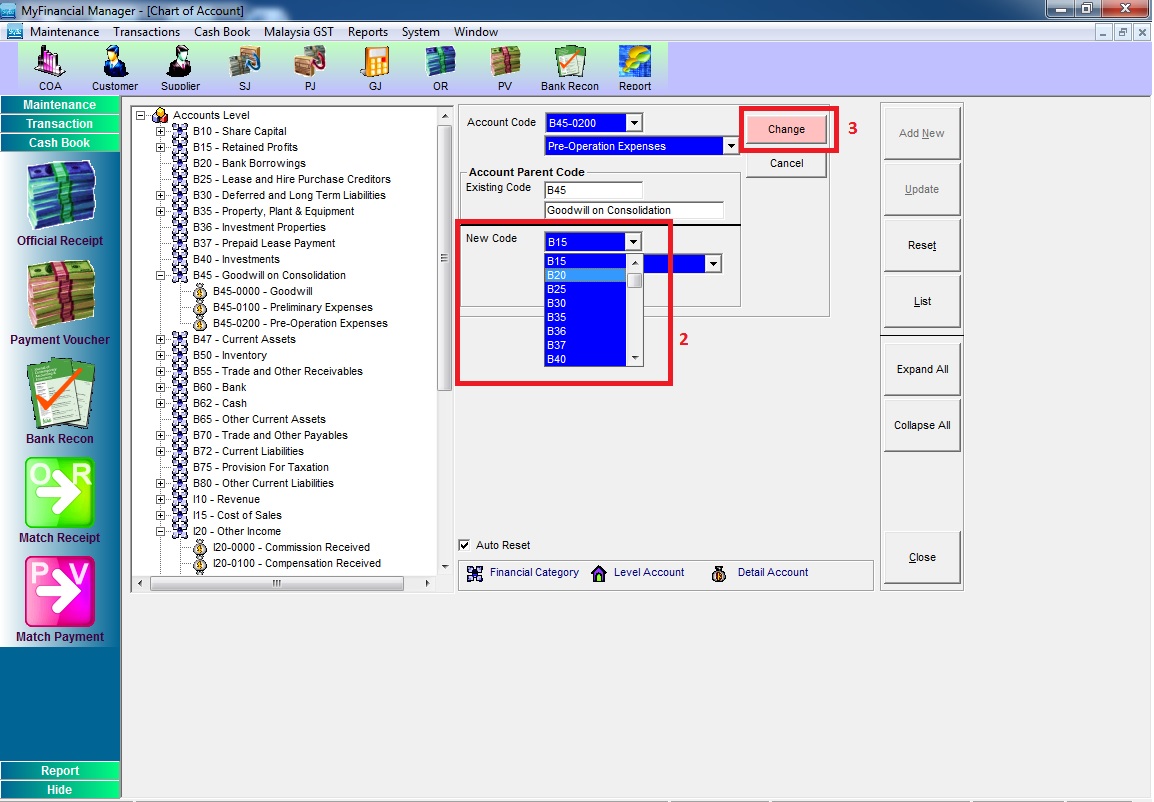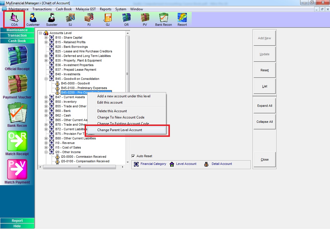 Below are guideline(s) to Change Parent Level Chart Of Account :