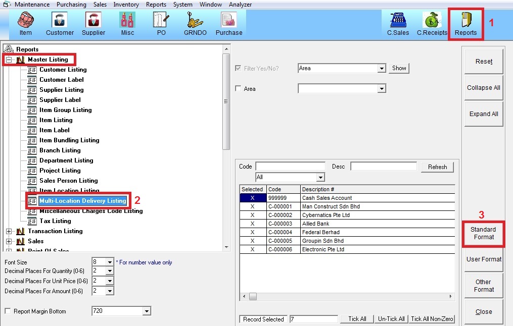 Step 1: Go to Reports >> Master Listing >> Multi- Location Delivery Listing >> click "Standard Format"