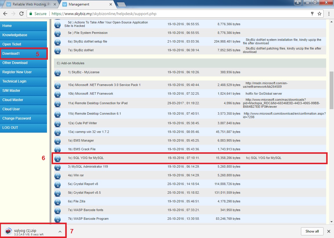 Go to "Download 1" >> under "C) Add-on Modules", download "1c) SQL YOG for MySQL" >> after download completed, extract the installer from zipped file >> run the installer