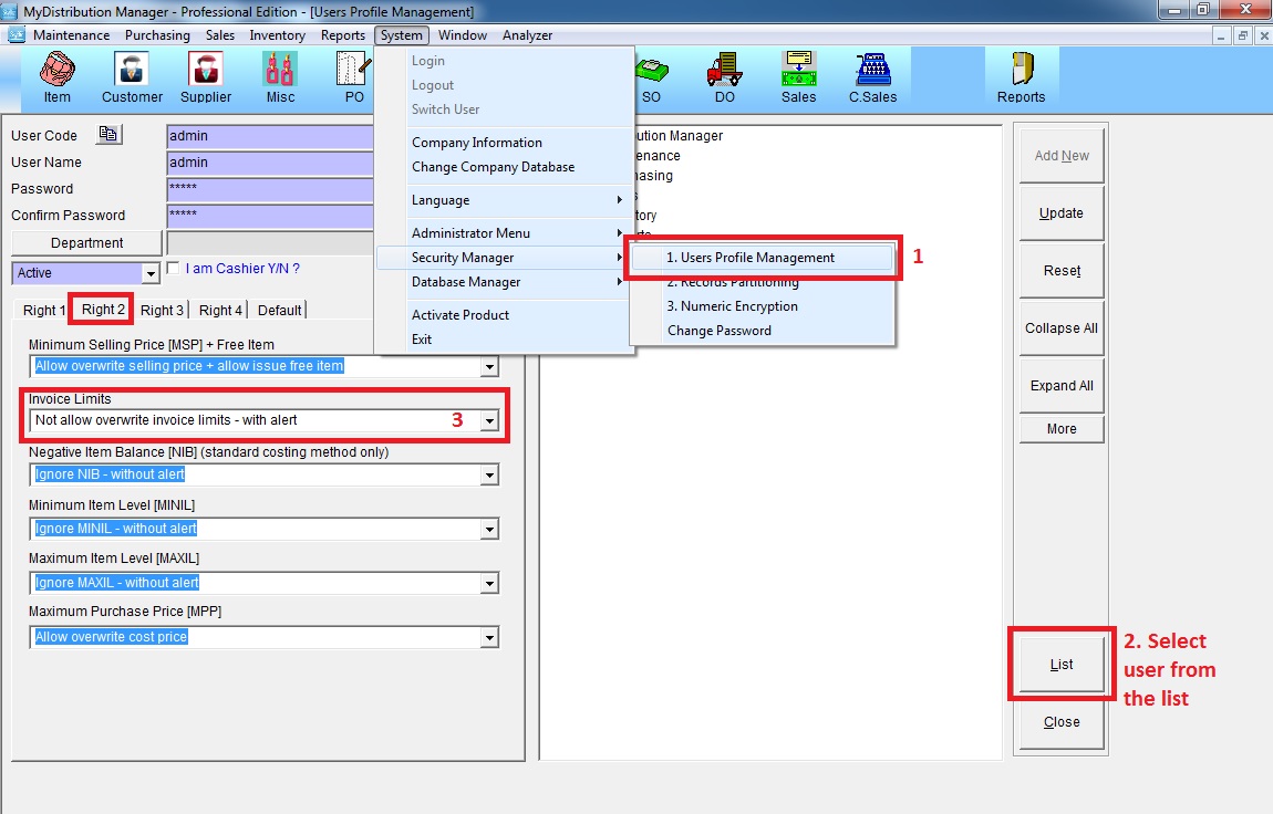 a. Go to System >> Security Manager >> User Profile Management