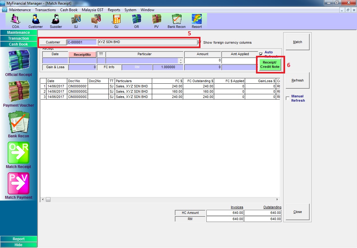 a) Go to Cash Book >> Match Receipt >> Match Receipt by Customer
