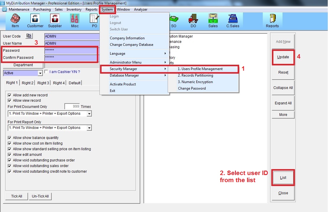 Step 1: Go to System >> Security Manager >> User Profile Management