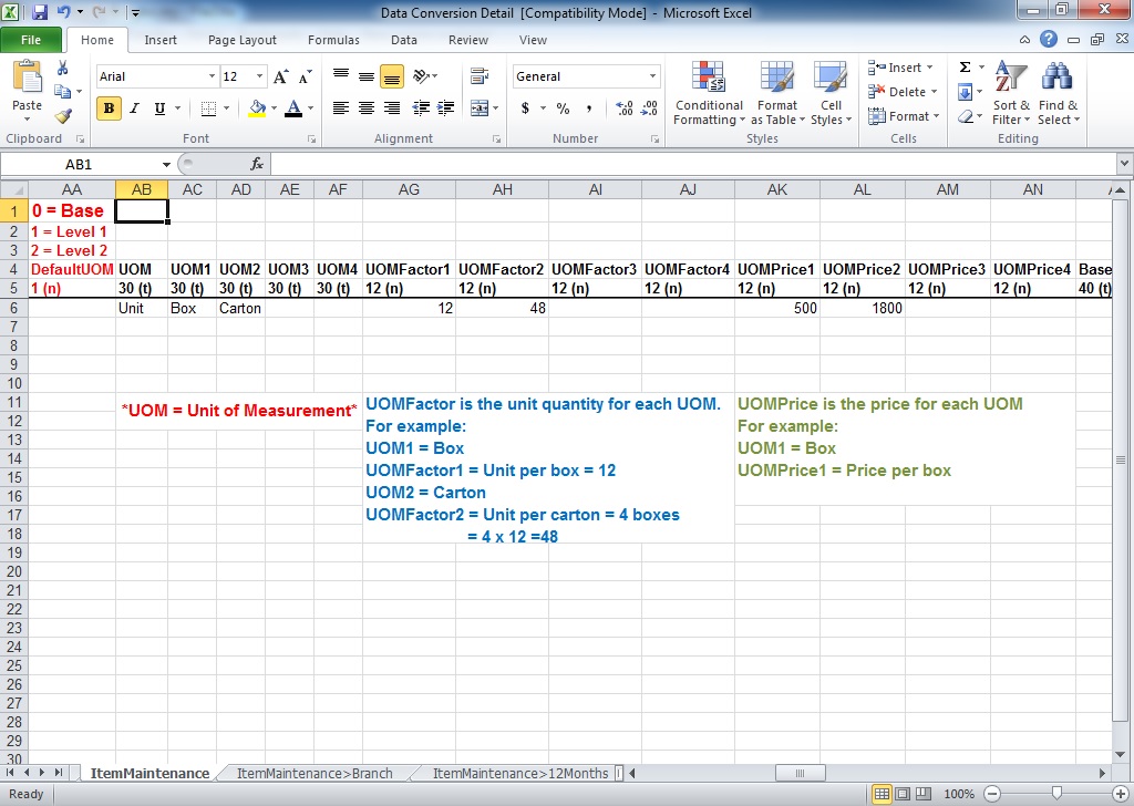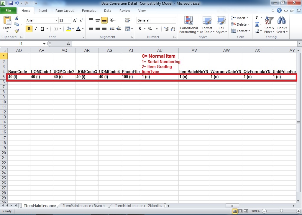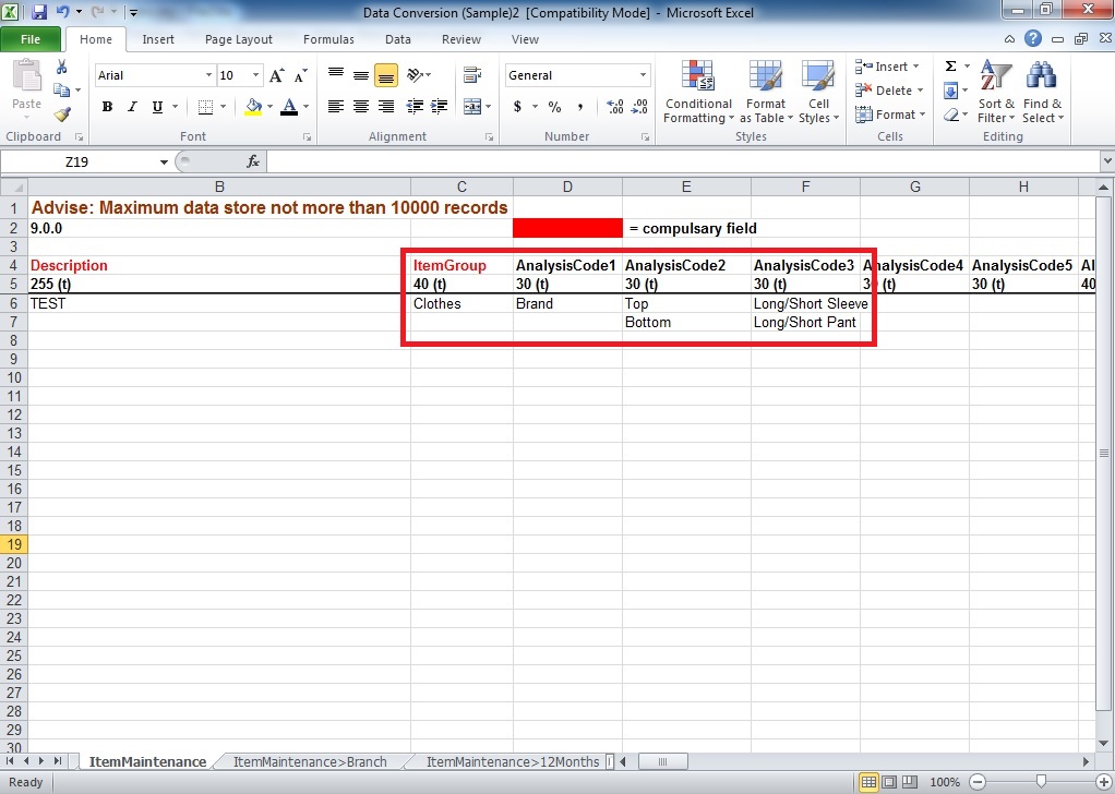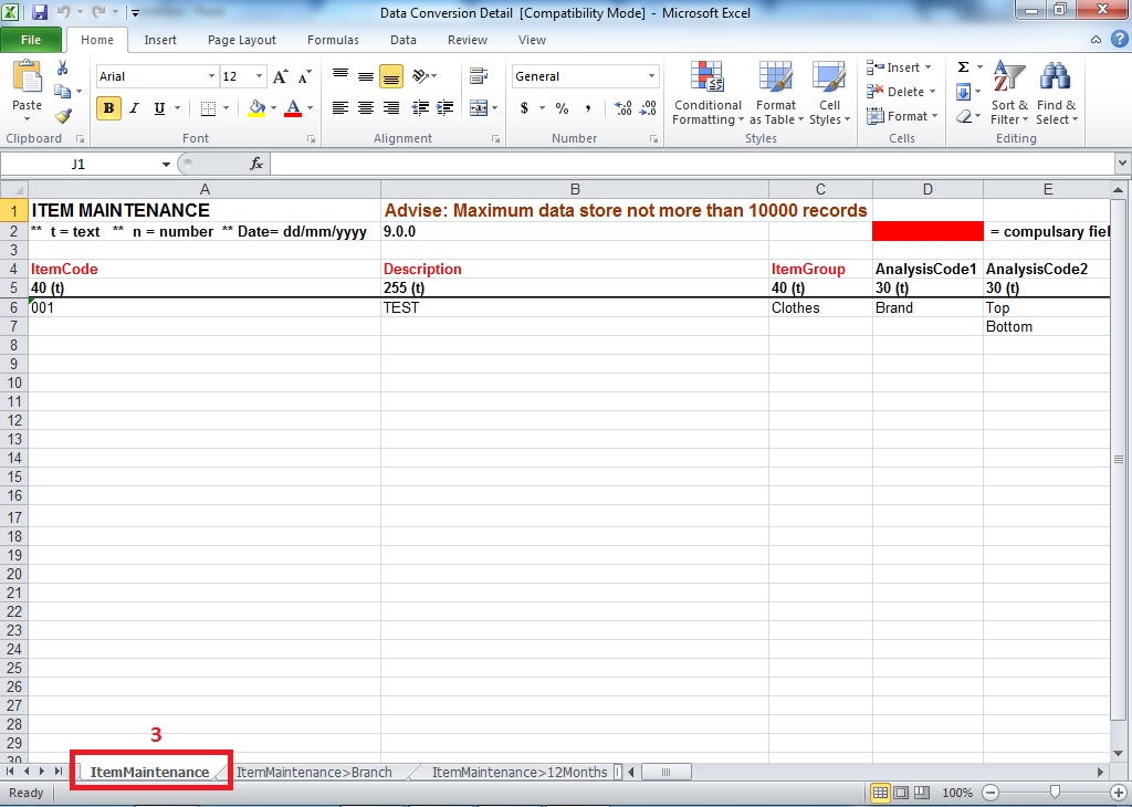 Step 2: Key in all data on Excel Conversion under Item Maintenance