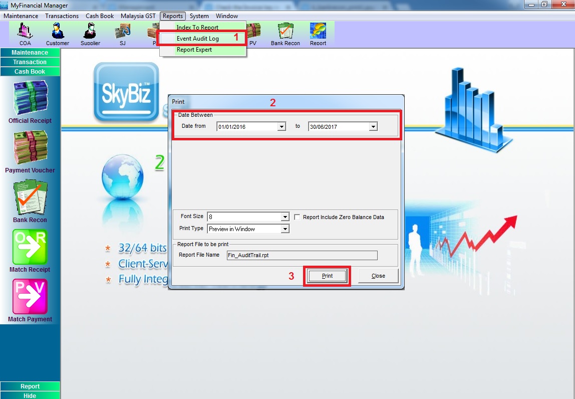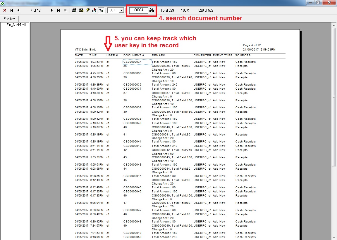 Step 1: Go to Reports >> Event Audit Log >> select date between >> click "Print"