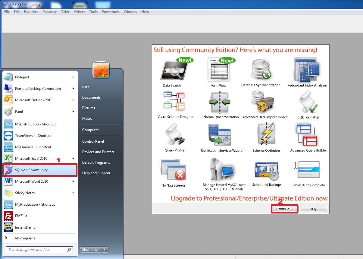 N/B: If the SQLyog Community is not on Start Menu then go to Desktop..