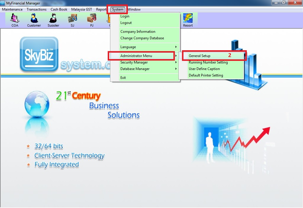 Step 1: Go to System >> Administrator Menu >> General Setup