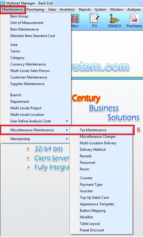 Step 4: Go to Maintenance >> Miscellaneous Maintenance >> Tax Maintenance