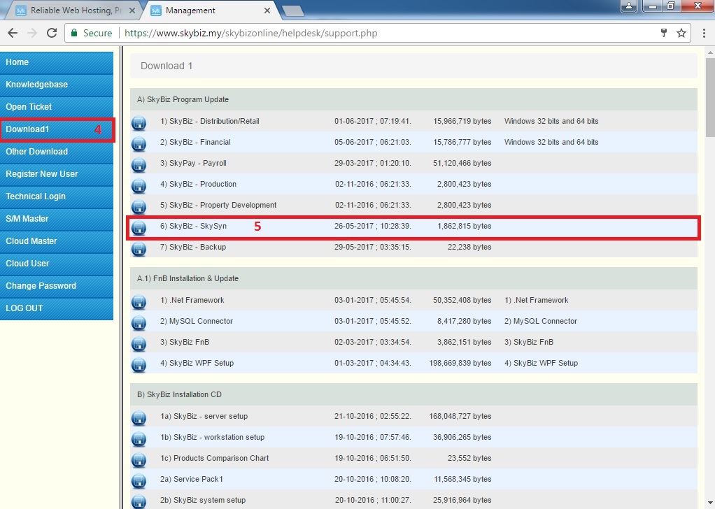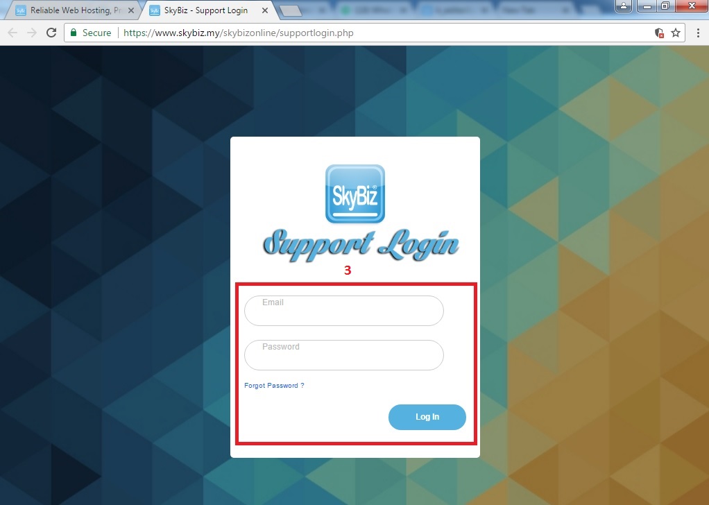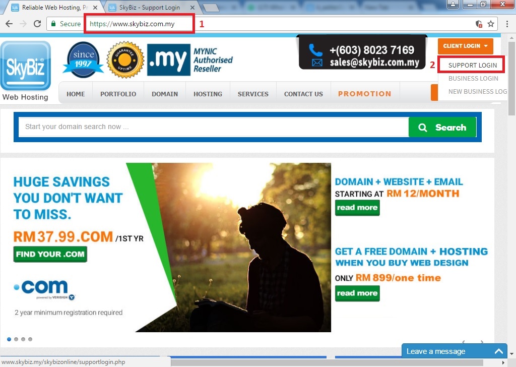 Step 1: Go to www.skybiz.com.my >> on top right corner of the website, click "Client Login" >> click "Support Login"
