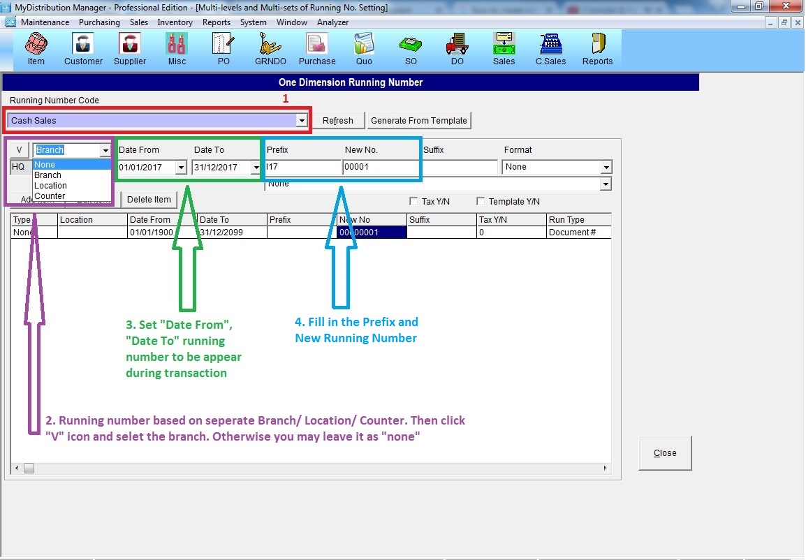 Below are guideline(s) to set "Cash Sales" running number