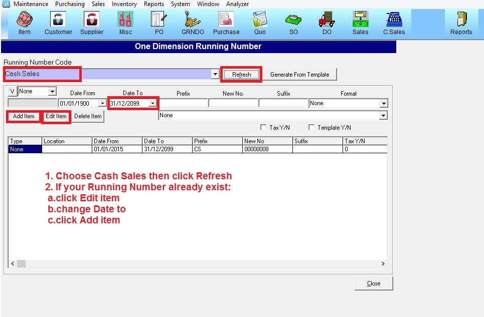 Scenario 1:If You Want Add New Running Number Cash Sales