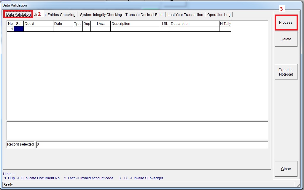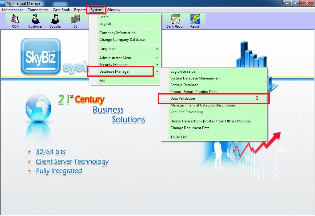 Step 1: Go to System >> Database Manager >> Data Validation